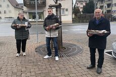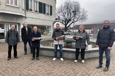 An diesem regnerischen Samstag konnten wir uns endlich auf dem Kreuzplatz in Landquart treffen. Der fast komplette Vorstand fand sich ein und hatte drei kleine Präsente von Ulla Bosshard im Gepäck. Natürlich möchte man den eingeladenen Gästen nicht mit leeren Händen gegenüberstehen!