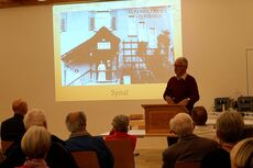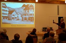 Rund 60 Personen lauschten Chris Brändlis Geschichten über "sein" Landquart von früher. Anhand von 12 Bildern tauchte er mit dem Publikum in seine Vergangenheit ein. Er erzählte Episoden aus seiner Kinderzeit, als seine Mutter eine Pension an der Schulstrasse geführt hatte, in der Arbeiter zu Mittag und zu Abend assen. Der junge Christoffel musste jeweils das Besteck abtrocknen.